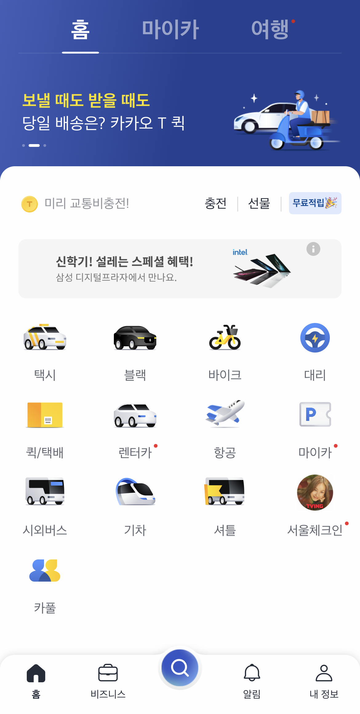우선 카카오 T 어플을 깔고 들어갑니다.